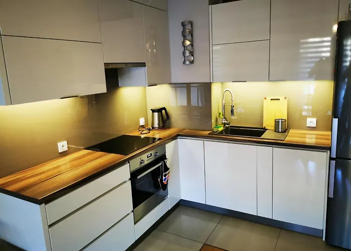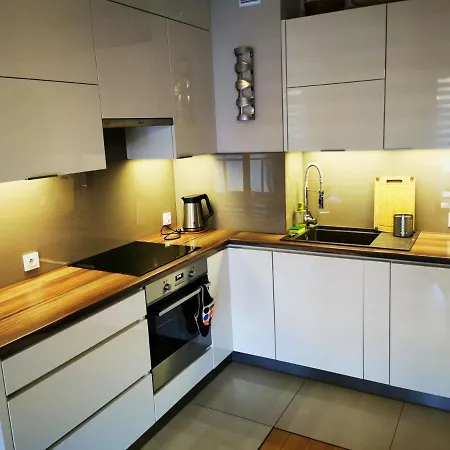 Localizado em Cracóvia, este apartamento fornece quartos com kitchenette, TV e ferro de engomar. Casas de banho com almofadas hipoalérgicas, almofadas hipoalergénicas e almofadas hipoalergénicas para baixo são fornecidos.